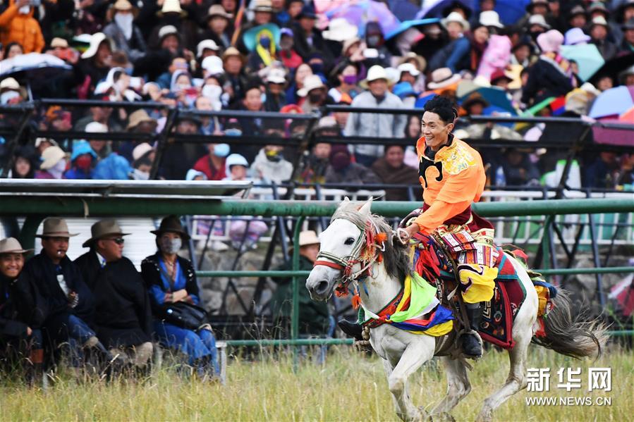 8月13日,骑手在赛马节开幕式上表演。 当日,第十二届格萨尔赛马节在甘肃省甘南藏族自治州玛曲县拉开帷幕。本届赛马节为期6天,共有来自西藏、青海、内蒙古、四川、甘肃等省区的52支队伍900多匹赛马参加速度赛和耐力赛等项目的比赛,期间还将举办草原音乐节、马术表演、民间弹唱等活动。 新华社记者 陈斌 摄