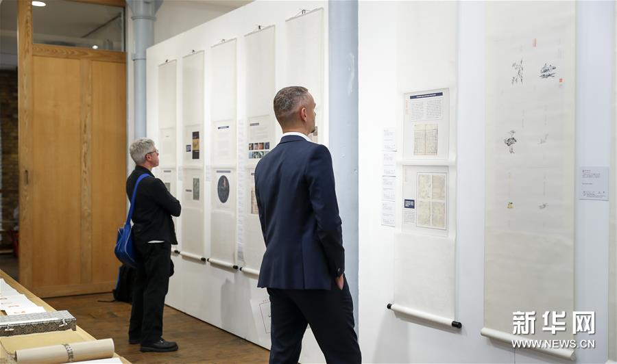 8月12日,在英国伦敦,嘉宾参观木版水印艺术作品展。 “梓墨千年——十竹斋木版水印艺术作品展”12日在伦敦英国王储基金会传统艺术学院开幕。据主办方中国古籍保护协会介绍,以明代胡正言“十竹斋”为代表的饾版、拱花等多色套印技术集绘、刻、印于一体,是中国古代印刷发展史中一笔珍贵的文化遗产。此次展览展出200余件艺术作品和实物,其中《廿四节气》《千手千眼观音》和木刻肖像印等作品是首次在英国展出。 新华社记者韩岩摄