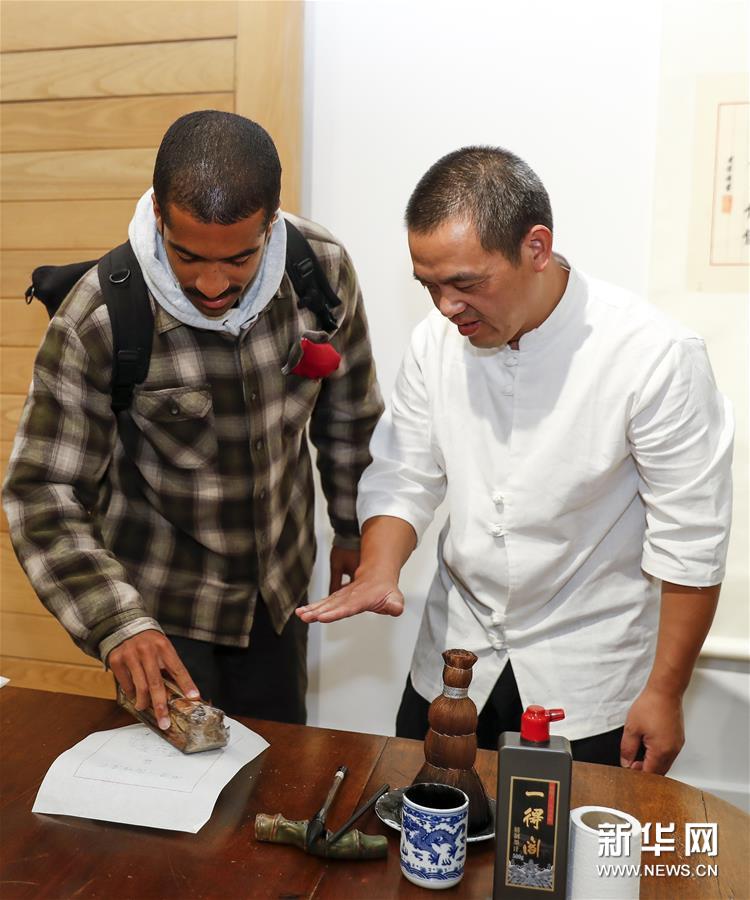 8月12日,在英国伦敦,嘉宾(左)在体验木版水印。 “梓墨千年——十竹斋木版水印艺术作品展”12日在伦敦英国王储基金会传统艺术学院开幕。据主办方中国古籍保护协会介绍,以明代胡正言“十竹斋”为代表的饾版、拱花等多色套印技术集绘、刻、印于一体,是中国古代印刷发展史中一笔珍贵的文化遗产。此次展览展出200余件艺术作品和实物,其中《廿四节气》《千手千眼观音》和木刻肖像印等作品是首次在英国展出。 新华社记者韩岩摄