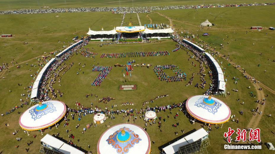 8月13日,航拍那达慕开幕式现场。当日,“四季乌珠穆沁”金秋那达慕暨蒙古搏克超级联赛总决赛在内蒙古自治区东乌珠穆沁旗开幕,除了那达慕的传统项目骑马、射箭和搏克以外,还将举办东乌珠穆沁旗第九届“乌珠穆沁羊节”以及招商引资推介会等活动。中新社发 钟欣 摄