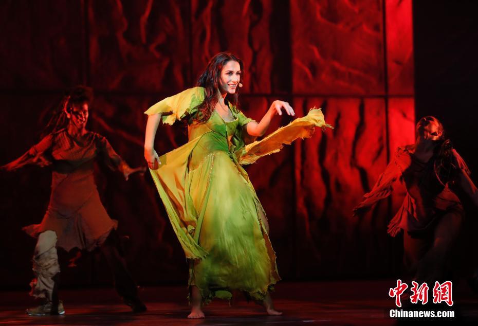 8月15日,法国音乐剧《巴黎圣母院》在北京天桥艺术中心上演。这部音乐剧改编自法国作家雨果的传世经典,由欧美乐界顶尖才子吕克·普拉蒙东谱词,理查德·科西昂特作曲。1998年在巴黎首次问世就获得了轰动,随后21年间,长盛不衰。图为当日彩排中,女主角爱丝梅拉达的扮演者塔瓦吉。中新社记者 杜洋 摄