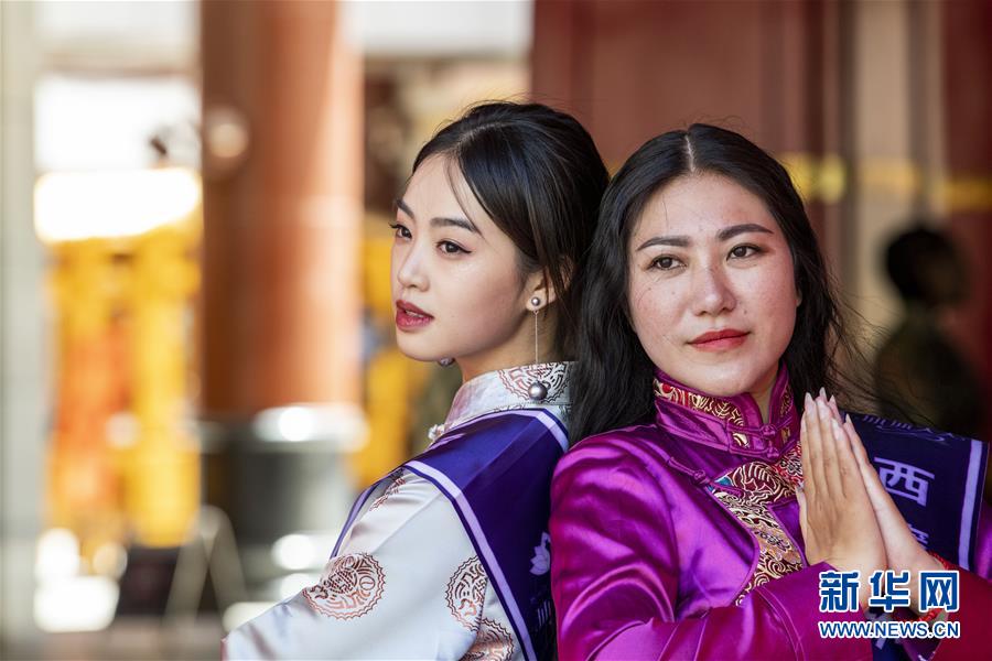 8月18日,模特在活动现场展示藏式时装。 当日,第23届环球夫人大赛西藏赛区活动在拉萨举行,30余名身着藏族特色时装的模特在现场展示。 新华社记者 晋美多吉 摄