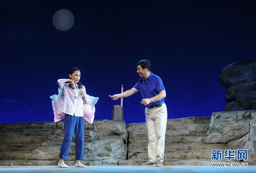 8月18日晚拍摄的现代花鼓戏《乡月照人还》剧照。新华社记者 冯为民 摄