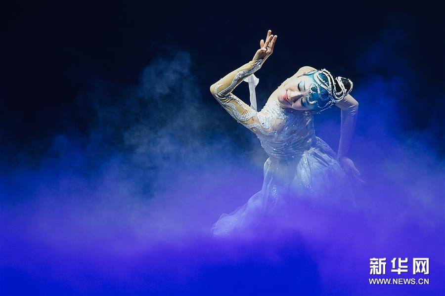 8月16日,在俄罗斯首都莫斯科,演员在舞台上表演。 中国文化遗产传播剧《遇见大运河》16日晚在俄罗斯首都莫斯科的克里姆林宫国家大剧院上演。该剧旨在展现中国大运河风貌,表现中国对运河文化遗产的思考。 新华社发(叶甫盖尼·西尼岑摄)