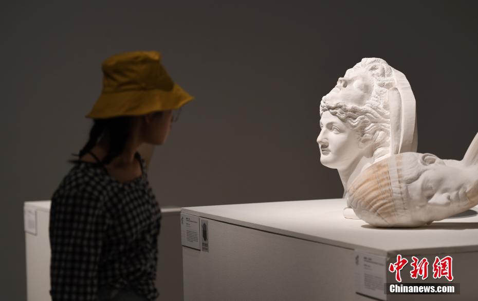 8月22日,一位参观者在创意人像作品前驻足。当日,在浙江杭州举办的“纸上谈缤——中华纸文化当代艺术展”,以雕塑、影像等作品形式阐释“纸文化”在推进中华文明流变中的共生经验,吸引民众参观。中新社记者 王刚 摄