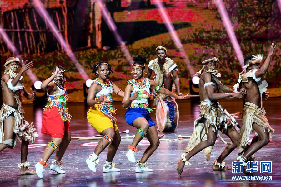 8月23日,来自南非的演员在表演节目《祖鲁歌舞》。 新华社记者 刘磊 摄