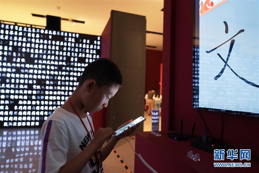 8月24日,参观者在展厅利用“写字先生”APP临摹书法字体。 当日,不少游客来到中国国家博物馆,参观正在展出的“字载中华——中华精品字库工程成果展”。 “中华精品字库工程”是中华优秀传统文化传承发展工程支持项目,将精选100位中国历代书法名家的代表作品,开发成计算机字库。 本次工程成果展共发布首批12款字体:王羲之行书、颜真卿楷书、柳公权楷书、苏轼行书、米芾行书、文征明行草、王铎行草、爨宝子楷书、鲁迅行书、沈尹默行书、启功行楷、刘炳森隶书。 新华社记者 沈伯韩 摄