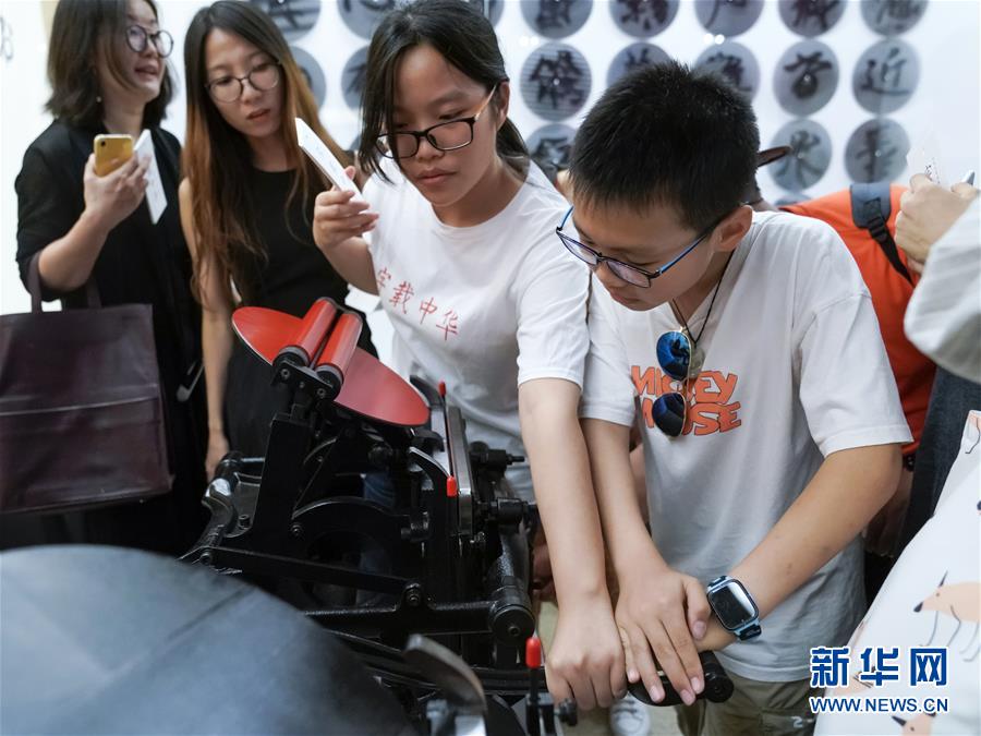 8月24日,参观者操作圆盘印刷机,用此次发布的“中华精品字库工程”12款字体制作书签。 当日,不少游客来到中国国家博物馆,参观正在展出的“字载中华——中华精品字库工程成果展”。 “中华精品字库工程”是中华优秀传统文化传承发展工程支持项目,将精选100位中国历代书法名家的代表作品,开发成计算机字库。 本次工程成果展共发布首批12款字体:王羲之行书、颜真卿楷书、柳公权楷书、苏轼行书、米芾行书、文征明行草、王铎行草、爨宝子楷书、鲁迅行书、沈尹默行书、启功行楷、刘炳森隶书。 新华社记者 沈伯韩 摄