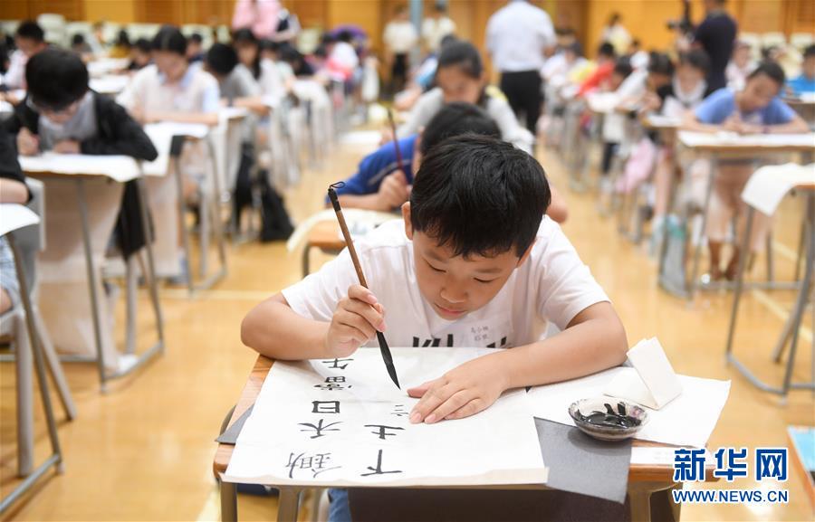 8月25日,参赛选手在比赛中认真书写。新华社记者 卢汉欣 摄