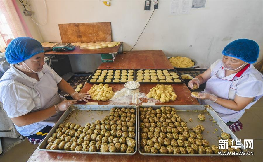9月5日,河北安平县安平镇政宣村的老孟家的传统手工月饼铺的师傅们在制作月饼。 临近中秋,河北省安平县安平镇政宣村的老孟家月饼铺加紧赶制手工月饼,为当地百姓献上中秋传统美食。据了解,老孟家传统手工月饼铺已有三十余年历史,旺季时他们每天烤制月饼千余斤,其现制现卖、价格实惠、充满老味道的传统手工脆皮月饼受到当地百姓的欢迎。 新华社记者李晓果摄