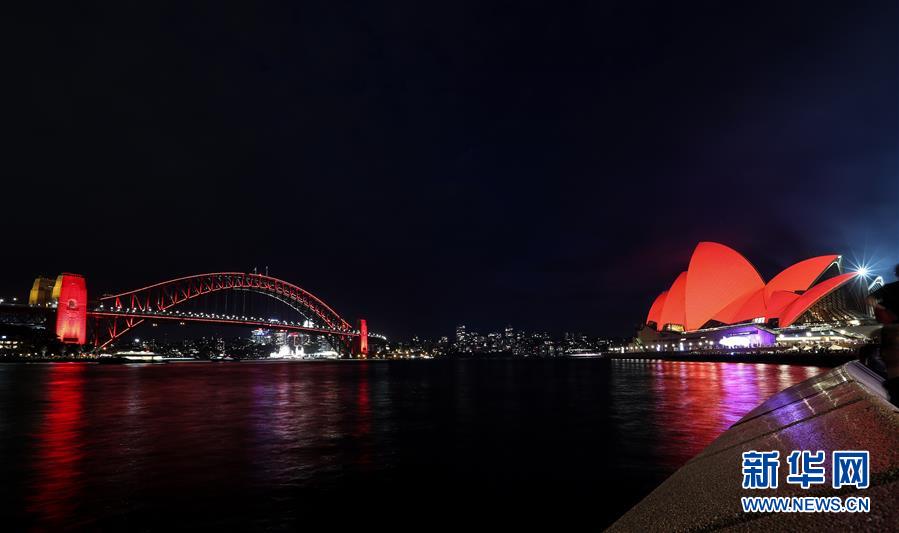 红色是中国传统的喜庆色彩。 每逢中国盛大节日,世界各地被“中国红”装点,因“中国红”熠熠发光;国际舞台热衷展现“中国红”的独特魅力,因“中国红”大放异彩;海外民众为“中国红”着迷,爱上中国文化...... 这是澳大利亚悉尼的悉尼歌剧院和海港大桥同时点亮象征吉祥的红色照明,庆祝中国农历新年(2019年2月4日摄)。 新华社记者白雪飞摄