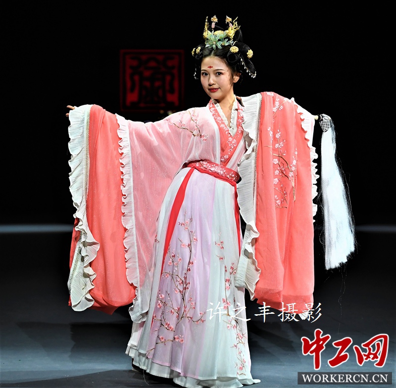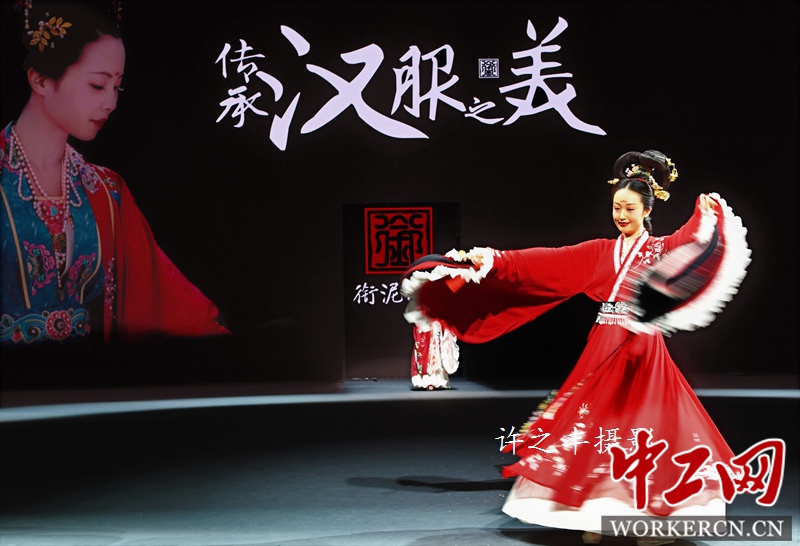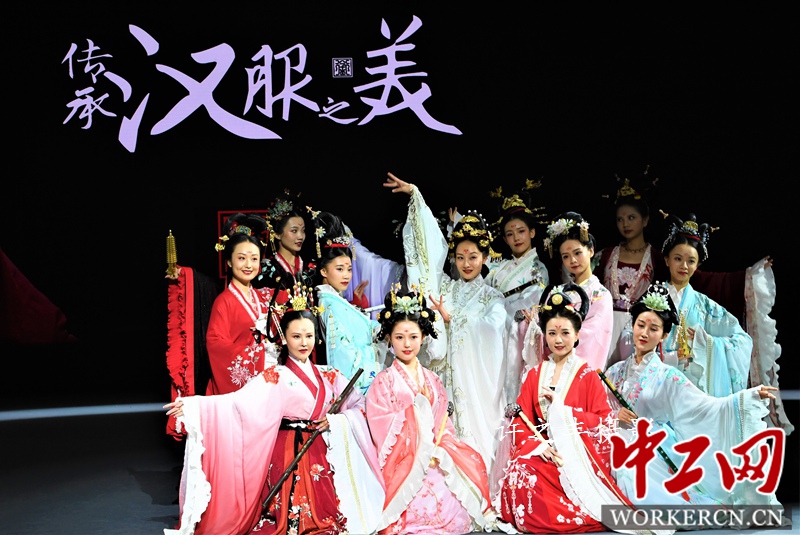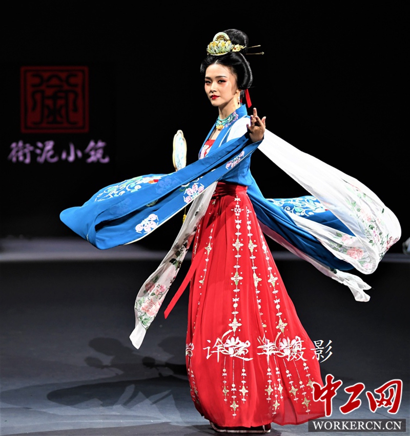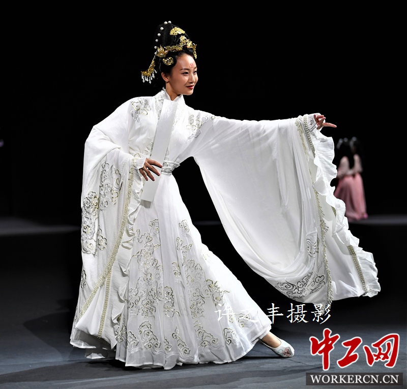 2019年9月6日晚,国家游泳中心水立方,北京时装周传承汉服之美。汉服其独特、精致的裁剪工艺与中国古典哲学相得益彰,展示中国几千年礼乐文明生生不息的载体,将具有古典、含蓄、轻盈、飘逸之美的汉服体现地淋漓尽致。如今热爱汉服的人们遍布五湖四海,这一传统服饰正走向全世界。工人日报-中工网许之丰摄影报道