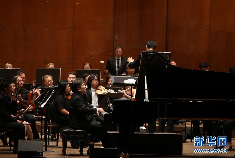 9月6日,在美国纽约林肯中心,音乐家在“金秋之夜”音乐会上表演钢琴协奏曲《黄河》。 当日,“金秋之夜”音乐会在林肯中心举行,艺术家为观众献上一场精彩的视听盛宴,迎接中秋佳节。 新华社记者 秦朗 摄