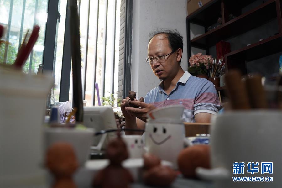9月8日,何斌在工作室创作。 今年43岁的何斌是江苏省级非遗项目“南京泥人”的传承人。他20岁入行,师承惠山泥人非物质文化遗产国家级传承人喻湘涟,从无锡惠山学艺归来后开始创作“南京泥人”。近年来,随着行业的萎缩,何斌身边一些同行纷纷转行。目前,何斌除了带徒弟,还开展一些兴趣班教学,并着手“南京泥人”的文创产品开发,希望能够“以产养遗”,将这门非遗技艺传承下去。 新华社记者 季春鹏 摄