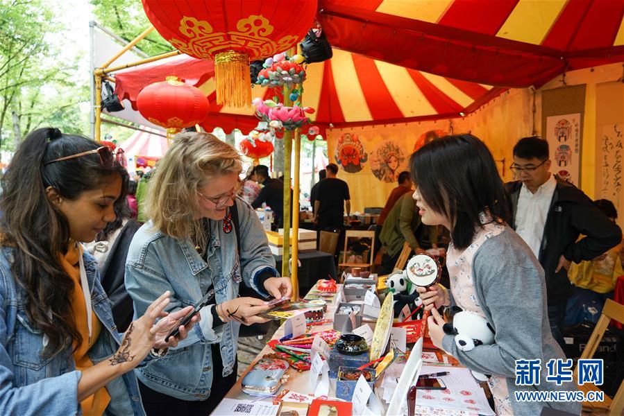 9月7日,在荷兰海牙,参观者在海牙使馆节上的中国展亭挑选工艺品。 一年一度的海牙使馆节于9月6日至7日在荷兰海牙举行,各类文化活动吸引了众多参观者。海牙使馆节已成为各国驻荷兰使馆集中展示本国文化的重要平台。 新华社记者林立平摄