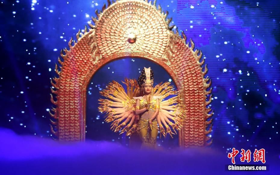9月9日,由中国残疾人事业新闻宣传促进会主办的“共享芬芳、共铸小康”中西部地区百县百场走进青海公益巡演在青海大剧院开演。演出现场,中国残疾人艺术团的特殊演员们表演了舞蹈、舞剧、器乐联奏等10余个精彩节目,灿烂的笑容、优美的舞姿,展现了他们对艺术和生命的热爱。图为中国残疾人艺术团经典剧目《千手观音》。中新社记者 马铭言 摄