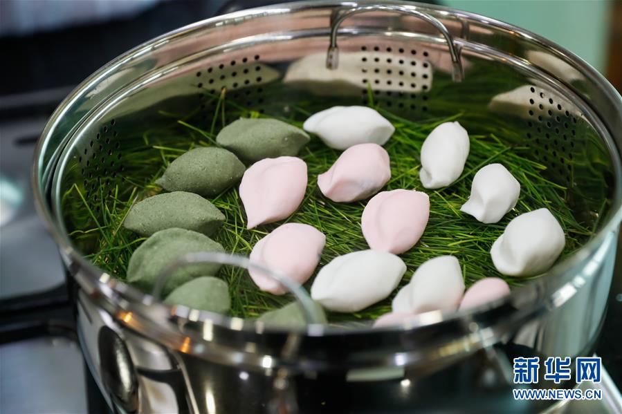 9月10日,在位于韩国首尔的韩国传统饮食研究所,松饼被摆在蒸锅内。新华社记者王婧嫱摄