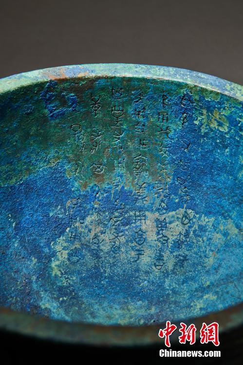 9月10日上午,国家文物局召开新闻发布会,正式对外公布:流失日本的“曾伯克父”青铜组器被成功追索,重新回到祖国。图为鼎内壁铭文。 国家文物局供图