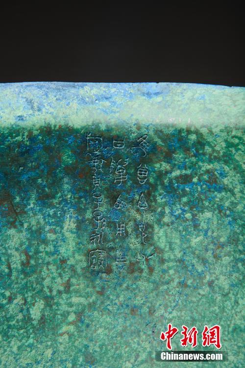 9月10日上午,国家文物局召开新闻发布会,正式对外公布:流失日本的“曾伯克父”青铜组器被成功追索,重新回到祖国。 图为甗铭文。国家文物局供图