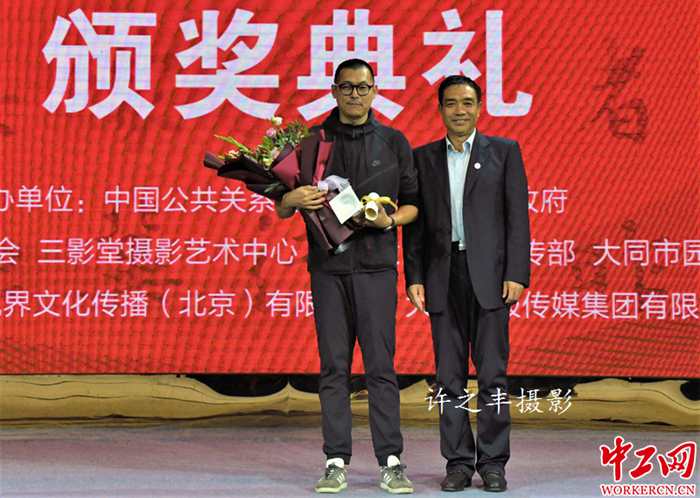 2019年9月10日晚,2019“影像的力量”中国(大同)国际摄影文化展,“镜美尊”颁奖典礼在大同举行。芬兰摄影师雅歌·卡黑兰涅米、立陶宛摄影师塔达斯·卡兹和中国摄影师周裕隆荣膺了这一殊荣。“镜美尊”寓意“镜头之王”,是摄影文化艺术之巅的灿烂明珠,是对全球众多摄影师中的领袖和代表者的嘉奖,是赋予镜头生命与活力的摄影师最高的荣誉。图为2019“影像的力量”“镜美尊”颁奖典礼现场。工人日报-中工网许之丰摄影报道