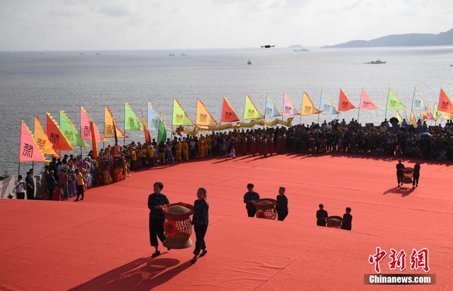9月15日,渔民们在献祭五谷果实。当日,第二十二届中国(象山)开渔节祭海仪式在浙江宁波象山举行,再现渔家古老而又隆重的典礼。中新社记者 王刚 摄