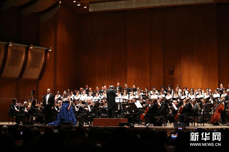 9月15日,在美国纽约,艺术家在世纪经典交响音乐会上表演《祖国颂》。新华社记者秦朗摄