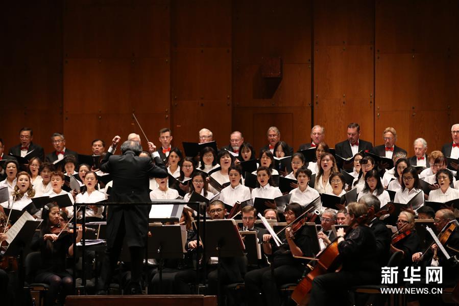 9月15日,在美国纽约,艺术家在世纪经典交响音乐会上表演《黄河大合唱》。新华社记者秦朗摄