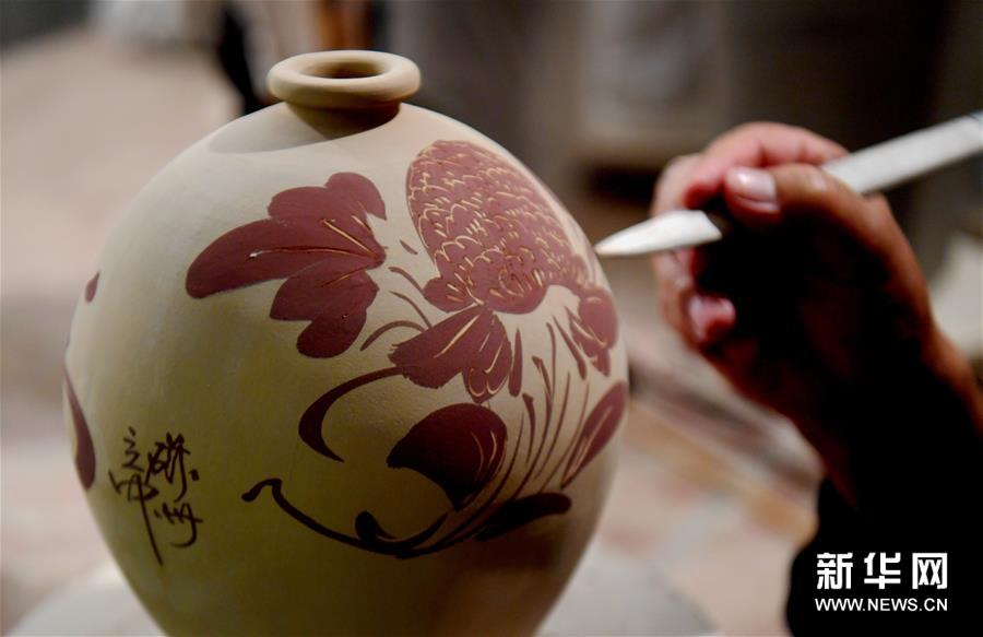 9月12日,在河北邯郸市峰峰矿区磁州窑盐店遗址博物馆制作工坊,刘立忠在制作磁州窑作品。 今年75岁的刘立忠是第一批国家级非物质文化遗产项目磁州窑烧制技艺代表性传承人,磁州窑盐店遗址博物馆馆长。出身于陶瓷世家的刘立忠是家族第四代传人。从艺以来,他一直致力于传统工艺的抢救与研究工作。经过他的整理与挖掘,传统磁州窑烧制的72道工序被完整地保存、延续下来,还有二十多项已经失传的装饰技艺也得到恢复。 磁州窑是我国北方的民窑体系,是古代民间窑场的杰出代表。为了更好地传承磁州窑文化与技艺,刘立忠先后收徒超过百人,向年轻人传授磁州窑烧制的传统工艺流程。“我的梦想就是让磁州窑窑火生生不息传承下去,发扬光大。” 刘立忠说。 新华社记者 王晓 摄