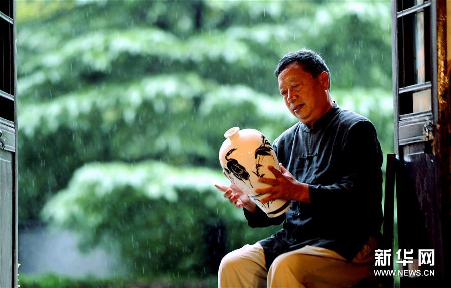 9月12日,刘立忠在河北邯郸市峰峰矿区磁州窑盐店遗址博物馆制作工坊里观察自己的作品。 今年75岁的刘立忠是第一批国家级非物质文化遗产项目磁州窑烧制技艺代表性传承人,磁州窑盐店遗址博物馆馆长。出身于陶瓷世家的刘立忠是家族第四代传人。从艺以来,他一直致力于传统工艺的抢救与研究工作。经过他的整理与挖掘,传统磁州窑烧制的72道工序被完整地保存、延续下来,还有二十多项已经失传的装饰技艺也得到恢复。 磁州窑是我国北方的民窑体系,是古代民间窑场的杰出代表。为了更好地传承磁州窑文化与技艺,刘立忠先后收徒超过百人,向年轻人传授磁州窑烧制的传统工艺流程。“我的梦想就是让磁州窑窑火生生不息传承下去,发扬光大。” 刘立忠说。 新华社记者 王晓 摄