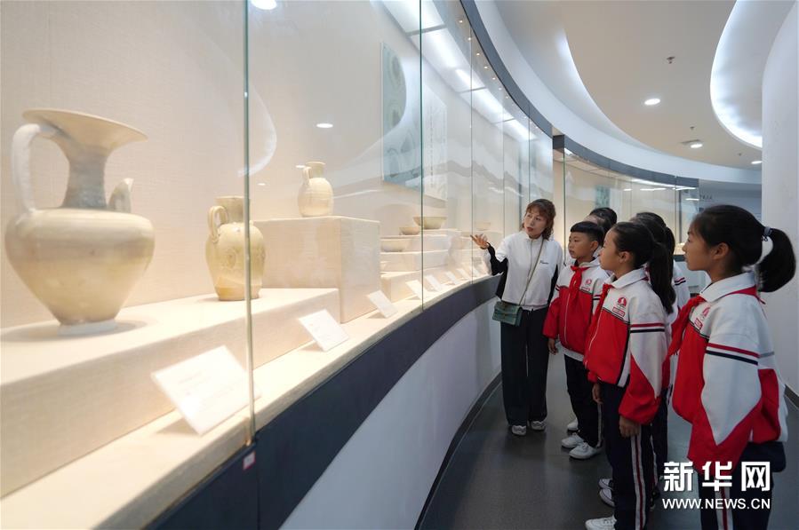 9月17日,河北省内丘县实验小学师生在中国邢窑博物馆内参观。 当日,河北省内丘县实验小学组织开展“浸润本土文化 感受家乡之美”主题社会实践活动。学生们来到内丘“邢窑三馆”——中国邢窑博物馆、邢窑遗址博物馆、邢瓷文化体验馆,参观邢白瓷藏品,学习邢白瓷知识,感受家乡邢窑文化。 新华社记者 朱旭东 摄