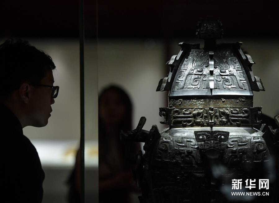 9月17日,观众在展柜前观看文物皿方罍。 当日,“回归之路——新中国成立70周年流失文物回归成果展”在北京中国国家博物馆开幕。展览通过25个具有代表性的文物回归案例、600余件文物全面展现70年来我国流失文物回归工作的不凡历程与丰硕成果。包括《伯远帖》、《五牛图》、皿方罍、圆明园青铜虎鎣、曾伯克父青铜组器等珍贵回归文物在展览上集中亮相。 新华社记者 李贺 摄