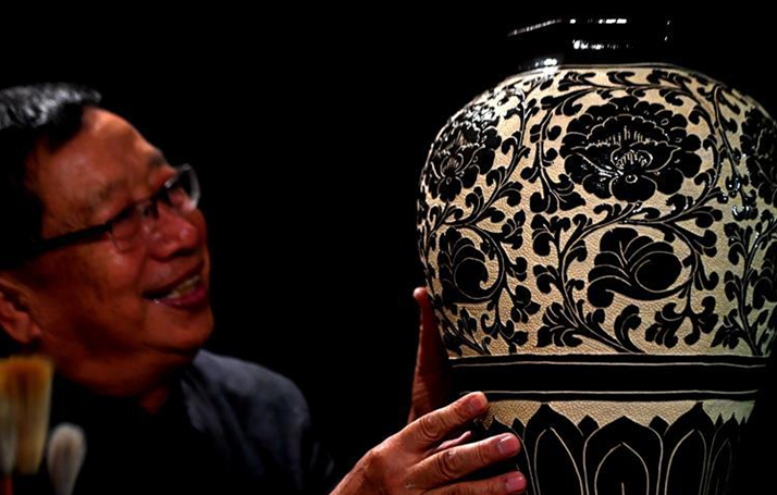 9月18日,在埃及首都开罗,著名豫剧演员汪荃珍表演豫剧选段。