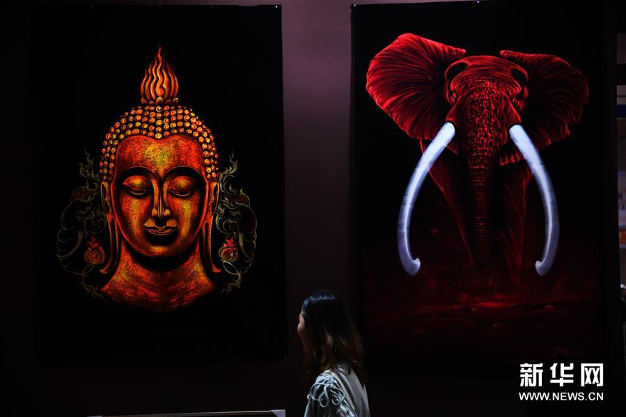 9月19日,参观者在泰国展区参观。 当日,第八届山东国际文化产业博览交易会在济南开幕。来自德国、英国、日本、韩国、俄罗斯、匈牙利等50多个国家和地区的参展商齐聚一堂,其中,来自“一带一路”沿线地区的文化精品吸引众多观众驻足欣赏。 新华社记者 王凯 摄