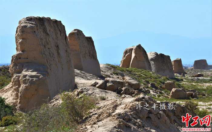 2019年9月26日,作者沿着长城西行,走进甘肃山丹县,这里的古长城遗址,不仅仅有建于明隆庆六年(1572),距今已有400多年的明长城,更主要的是有建于西汉元鼎六年(公元前111年),距今已2000多年历史的汉长城。汉、明组成的古长城在山丹境内蜿蜒连绵近百公里,被专家誉为“露天博物馆”。汉长城在北侧,明长城在其里,两者相距10米到80米。像这样修筑于不同时代而平行延伸的长城在国内实属罕见。工人日报-中工网许之丰摄影报道