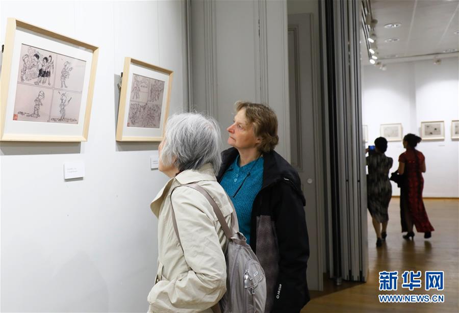 9月26日,在比利时布鲁塞尔,人们在中国文化中心参观“三毛”漫画手稿。 为庆祝新中国成立70周年,为期一个月的上海电影周26日晚在布鲁塞尔中国文化中心拉开帷幕。开幕式上播放了1949年12月首次上映的《三毛流浪记》4K高清修复版,受到现场观众热烈欢迎。 新华社记者 潘革平 摄