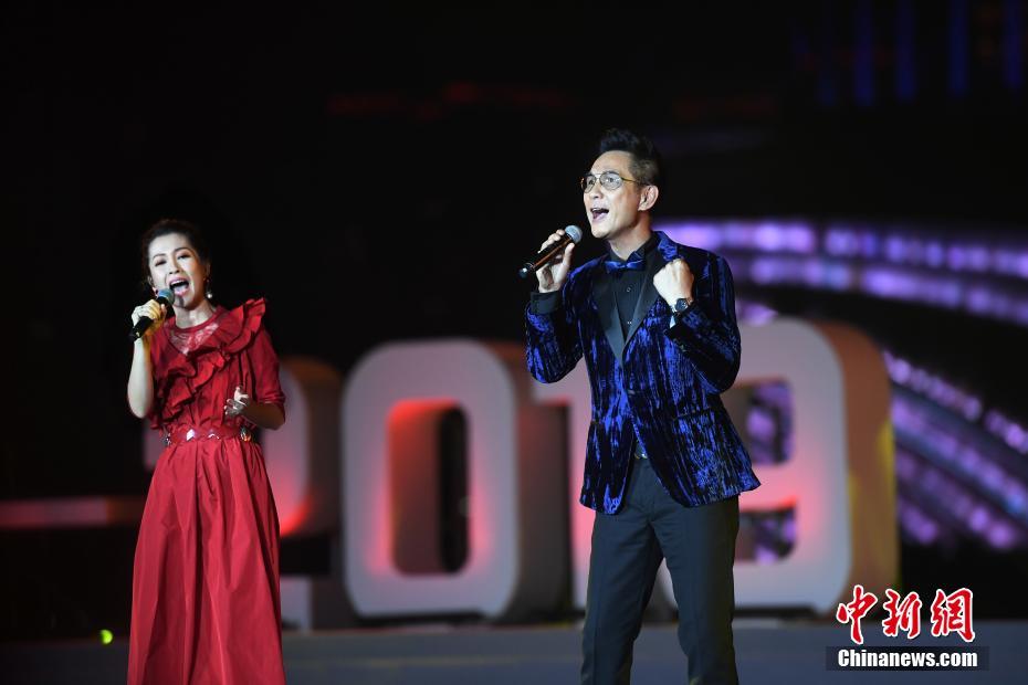 9月28日晚,陈启泰、关心妍在台上演唱。当日,“我和我的祖国”——广州庆祝中华人民共和国成立70周年文艺晚会在广州塔下举行。中新社记者 姬东 摄