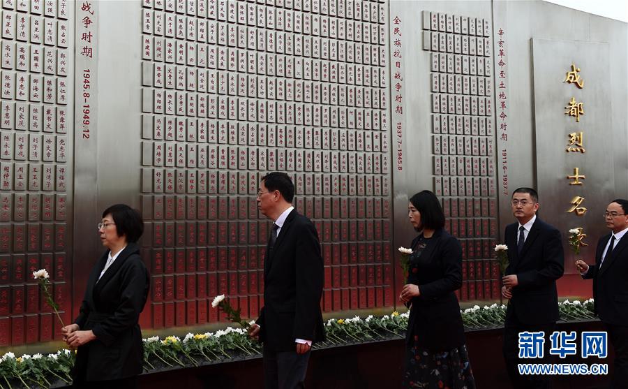 9月30日,社会各界人士在成都市烈士陵园瞻仰烈士名录墙并献花。 当日是烈士纪念日,全国各地纷纷举行纪念活动,缅怀先烈。 新华社发(王曦 摄)
