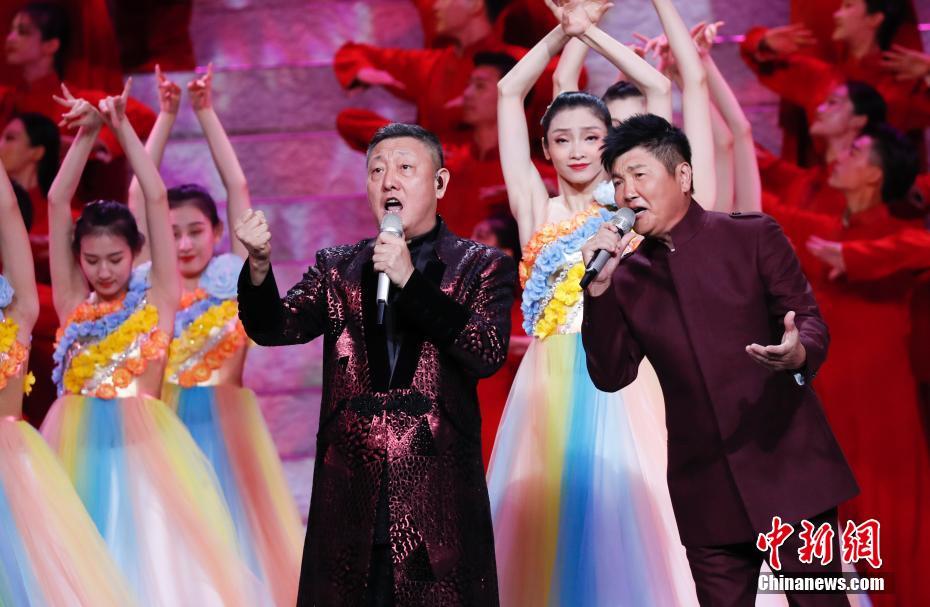 9月29日晚,庆祝中华人民共和国成立70周年大型文艺晚会《奋斗吧 中华儿女》在北京人民大会堂举行。图为韩磊、孙楠演唱《新天地》。中新社记者 杜洋 摄