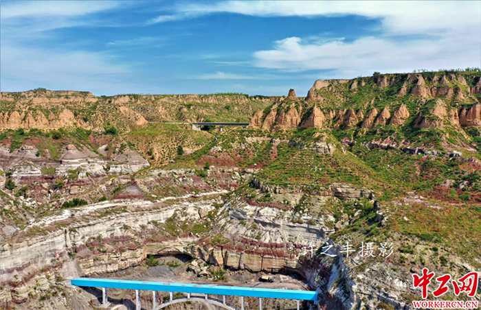 2019年9月17日,作者走进山西省河曲县,县城西濒黄河,恰当黄河之弯曲处,因名河曲。这里是晋、陕、蒙三省交界线。明长城遗址河曲段,从偏关县南下,起点在偏关县天峰坪镇寺沟村西南330米处,向南进入河曲县,河曲境内明长城54831.8米,以烽燧、长城边、城堡点、线、面共同构成长城坚固的防御体系。这里自古号称“陕东重镇”“晋右严疆”,是明九边重镇之一,历来处于防御鞑靼、瓦刺的第一线。工人日报-中工网许之丰摄影报道