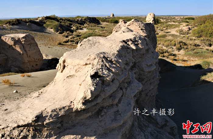 2019年9月30日,沿着古长城西行,走进甘肃瓜州锁阳城遗址,亦称“瓜州古城”。是集古城址、古河道、古寺院、古墓葬、古垦区等为一体的古文化遗存地。遗址结构可分为内外两城,将内城包围,墙体高大;内城面积28万平方米,城墙夯土版筑,底宽7.5米,顶宽4.6米,高10米,四角有角墩,结构极其复杂,城内留有大量土台、房屋及其它建筑物遗迹。这里的古代军事防御系统和烽燧信息传递系统是我国保存最为完好的典型范本,也是河西走廊规模较大保存完整的一座古城遗址。工人日报-中工网许之丰摄影报道