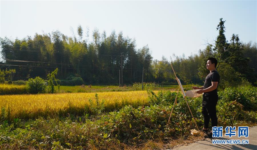 9月25日,周晶在家附近写生。 新华社记者 胡晨欢摄