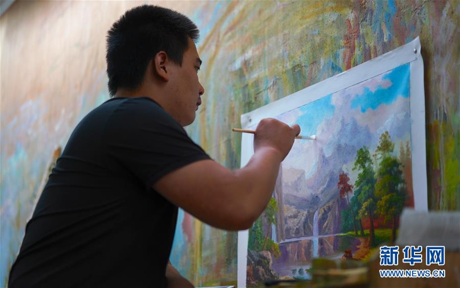 9月25日,周晶在江西省抚州市黎川县油画创意产业园绘制油画。 新华社记者 胡晨欢摄