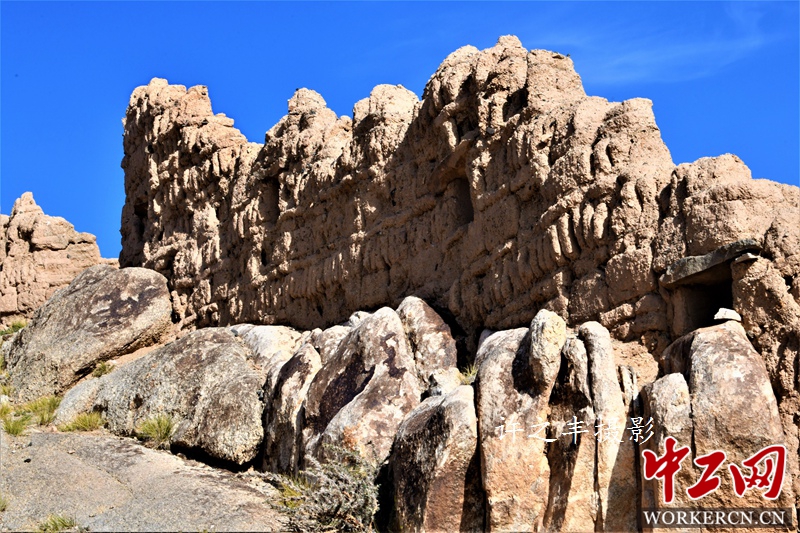 2019年10月4日,走进“明水军事要塞遗址”。这里地处新疆与甘肃交界的西北角,有一处古老的汉代前哨“明水军事要塞”,这里又被称作“半池泉”。四周山环绕的一块小盆地,面积约4平方公里。范围内分布着碉堡、战壕、营房、厨房、瞭望台等工事。这座曾经抵挡匈奴的要塞,历经两千多年风雨沧桑,从山顶的废墟中,依稀可见当年抵挡外敌的雄姿。工人日报-中工网许之丰摄影报道