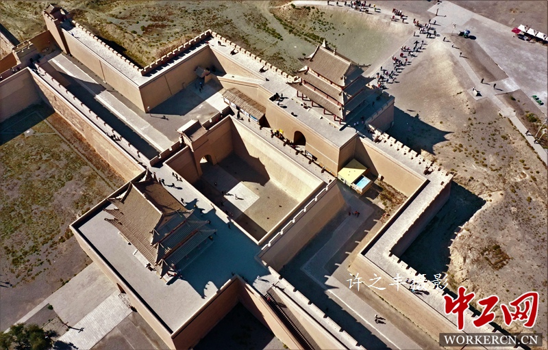 2019年9月29日,走进明长城嘉峪关,这里号称“天下第一雄关”。位于甘肃省嘉峪关市西5千米处最狭窄的山谷中部,城关两侧的城墙横穿沙漠戈壁,北连黑山悬壁长城,是明长城最西端的关口,历史上曾被称为河西咽喉,因地势险要,建筑雄伟,有连陲锁钥之称。嘉峪关是古代“丝绸之路”的交通要塞,中国长城三大奇观之一(东有山海关、中有镇北台、西有嘉峪关)。工人日报-中工网许之丰摄影报道