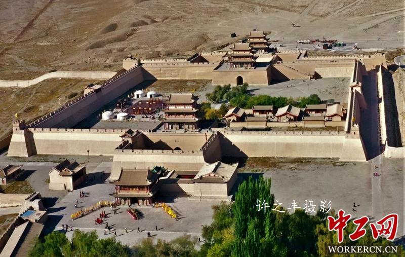 2019年9月29日,走进明长城嘉峪关,这里号称“天下第一雄关”。位于甘肃省嘉峪关市西5千米处最狭窄的山谷中部,城关两侧的城墙横穿沙漠戈壁,北连黑山悬壁长城,是明长城最西端的关口,历史上曾被称为河西咽喉,因地势险要,建筑雄伟,有连陲锁钥之称。嘉峪关是古代“丝绸之路”的交通要塞,中国长城三大奇观之一(东有山海关、中有镇北台、西有嘉峪关)。工人日报-中工网许之丰摄影报道