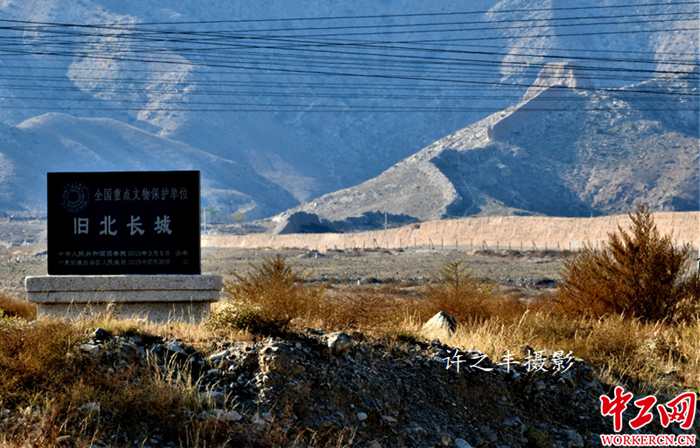 2019年10月7日,走进宁夏旧北长城,这里位于贺兰山脚下惠农区,人们通常称为红果子长城。旧北长城建于明朝嘉靖年间弘治以前,据史书记载“宁夏北,贺兰山,黄河之间,外有旧边墙一道。”所说的就是旧北长城,正好是镇远关的关墙。自古素有“关中屏障,河陇咽喉”之称,战略地位重要,从战国时期到秦、汉、隋、明几个朝代,都曾在宁夏修筑过长城。如今的旧北长城随着岁月的流逝,依然完好地保存着约5公里长的长城遗址,远远望去,依然不失当年的雄伟。工人日报-中工网许之丰摄影报道