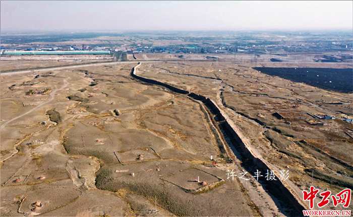 2019年10月7日,走进宁夏旧北长城,这里位于贺兰山脚下惠农区,人们通常称为红果子长城。旧北长城建于明朝嘉靖年间弘治以前,据史书记载“宁夏北,贺兰山,黄河之间,外有旧边墙一道。”所说的就是旧北长城,正好是镇远关的关墙。自古素有“关中屏障,河陇咽喉”之称,战略地位重要,从战国时期到秦、汉、隋、明几个朝代,都曾在宁夏修筑过长城。如今的旧北长城随着岁月的流逝,依然完好地保存着约5公里长的长城遗址,远远望去,依然不失当年的雄伟。工人日报-中工网许之丰摄影报道