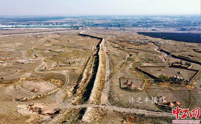 2019年10月7日,走进宁夏旧北长城,这里位于贺兰山脚下惠农区,人们通常称为红果子长城。旧北长城建于明朝嘉靖年间弘治以前,据史书记载“宁夏北,贺兰山,黄河之间,外有旧边墙一道。”所说的就是旧北长城,正好是镇远关的关墙。自古素有“关中屏障,河陇咽喉”之称,战略地位重要,从战国时期到秦、汉、隋、明几个朝代,都曾在宁夏修筑过长城。如今的旧北长城随着岁月的流逝,依然完好地保存着约5公里长的长城遗址,远远望去,依然不失当年的雄伟。工人日报-中工网许之丰摄影报道