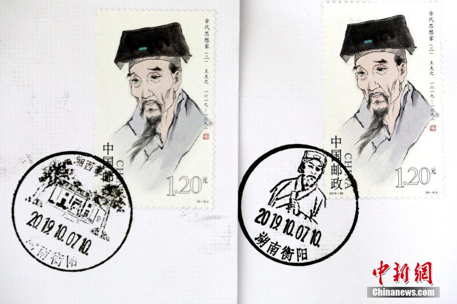 10月7日,王夫之诞辰400周年纪念邮票在湖南省衡阳县首发。该邮票为中国邮政发行的《古代思想家(二)》6枚系列邮票之一,面值1.2元人民币,由著名画家范曾绘制。王夫之,别称王船山,明末清初思想家,今年是其诞辰400周年。中新社发 刘欣荣 摄