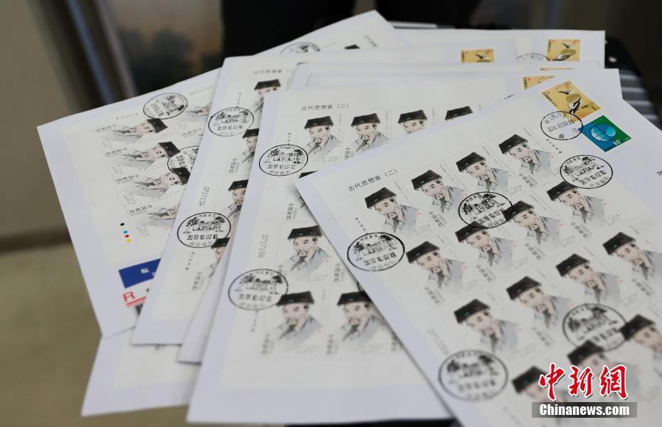10月7日,王夫之诞辰400周年纪念邮票在湖南省衡阳县首发。该邮票为中国邮政发行的《古代思想家(二)》6枚系列邮票之一,面值1.2元人民币,由著名画家范曾绘制。王夫之,别称王船山,明末清初思想家,今年是其诞辰400周年。 中新社发 刘欣荣 摄